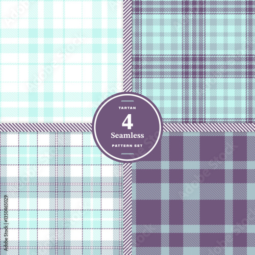Cherry Red and Pastel Buttercream Seamless Tartan Fabric Design Set of 4