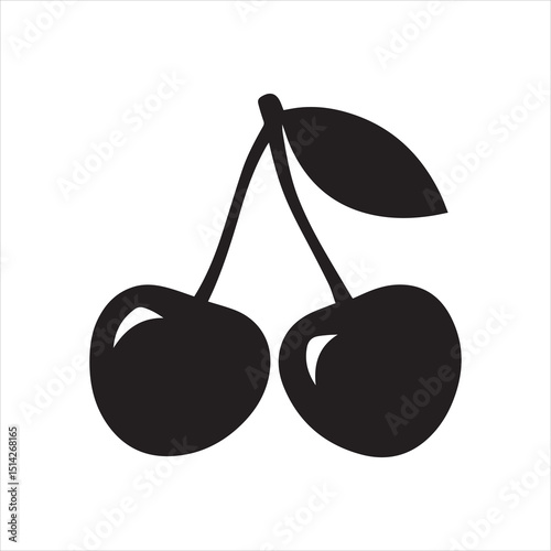 Cherry Silhouette Icon – Minimal Black Fruit Vector