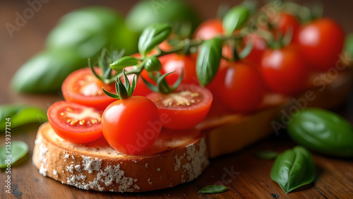 Cherry Tomatoes and Basil Bruschetta Harmony