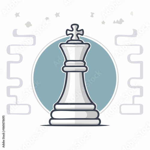 Chess king stylized cartoon game piece with surrounding board segments