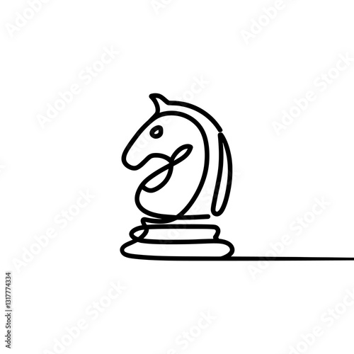 Chess Knight Piece Silhouette Continuous Line Drawing Minimalist Style
