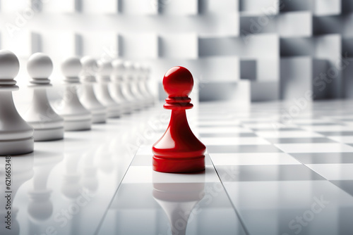 Chess piece of a different color from the rest, concept of strategy and leadership.