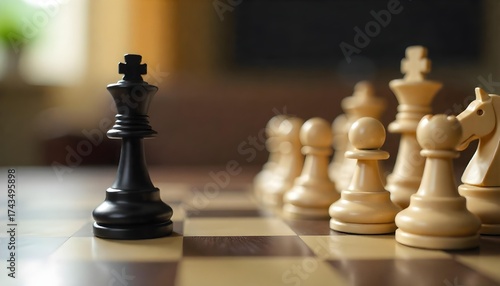 Chess pieces arranged on a chessboard, symbolizing strategy and competition for International Chess Day