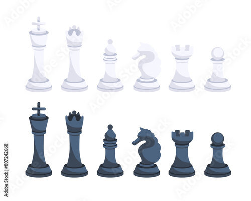Chess pieces. Board game. King, queen, bishop and knight