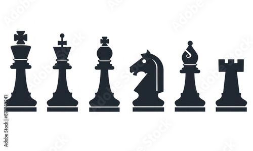 Chess Pieces Silhouette Showcasing Strategy and Contrast on a White Background - Generative AI