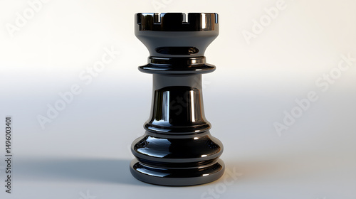 Chess Rook: A close-up shot showcases a polished, obsidian chess rook against a soft backdrop, evoking strategy and intellectual game.