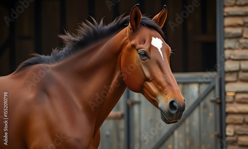 Chestnut Horse Elegantly Gazing in a Rustic Stable Setting