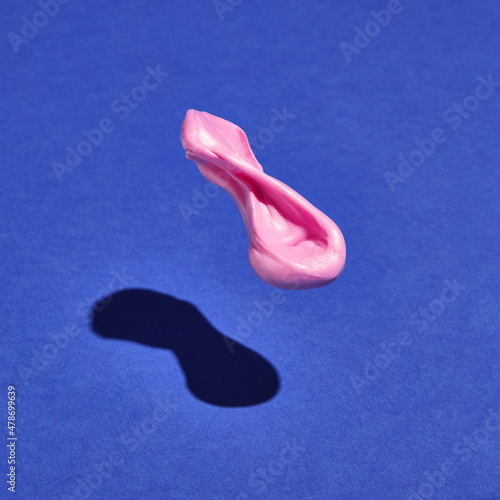 Chewed gum hovers in the air. Sweet pleasure and vivid emotions.