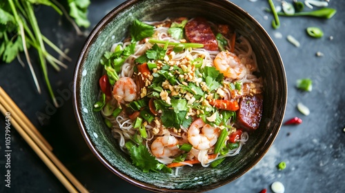 Chha Kuy Teav Cambodian Stir-Fried Noodles with Sausage and Shrimp (Cambodian Cuisine)
