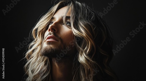 Chiaroscuro Portrait of Jesus Christ in Black and White with Introspective Expression and Flowing Hair