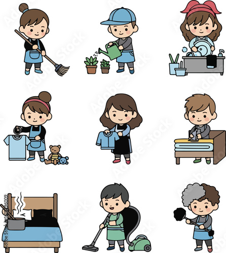 Chibi Characters Doing Household Chores