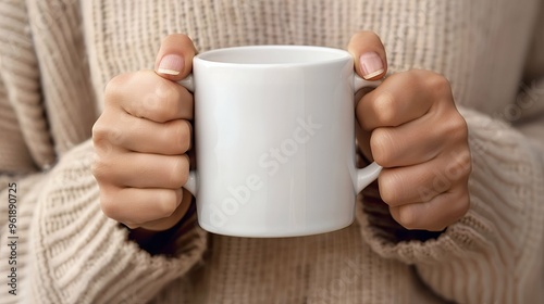 Chic Female Hand Showcasing a Sleek White Mug Mockup Perfect for Your Branding Needs
