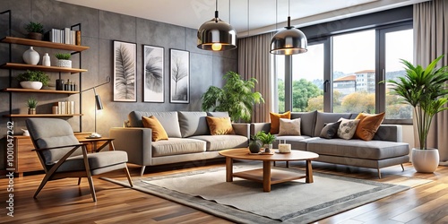 Chic living room blends stylish furniture and cozy decor in a contemporary West Elm-inspired design, offering comfort