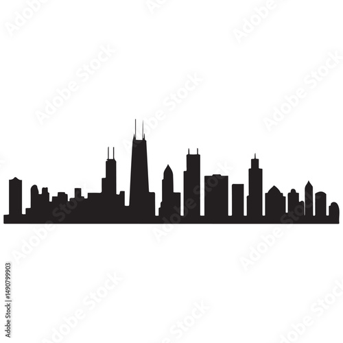 Chicago Illinois skyline silhouette. Black Cleveland city design Vector black silhouette. with white background