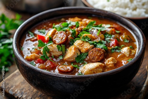 Chicken and Sausage Stew with Parsley and Bell Peppers