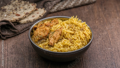 Chicken Biryani Served with Green Chutney, protein-rich meal