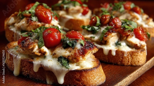 Chicken Bruschetta. Delectable Combination of Chicken, Tomatoes, and Cheese on a Plate