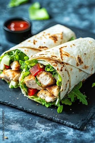 Chicken Caesar Wrap Cian Blue Background High Resolution