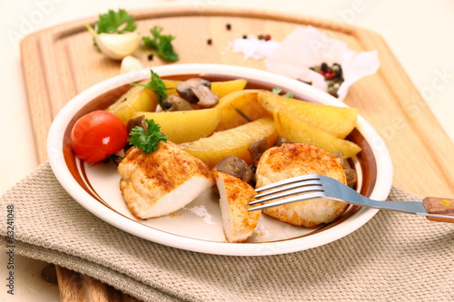 Chicken fillet with rosemary potatoes and mushroom