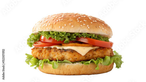 Chicken Patty Burger with Cheese and Vegetables, Transparent