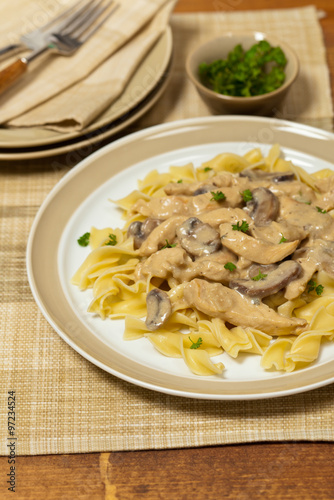 Chicken Stroganoff a variation on Beef Stroganoff. Selective focus.