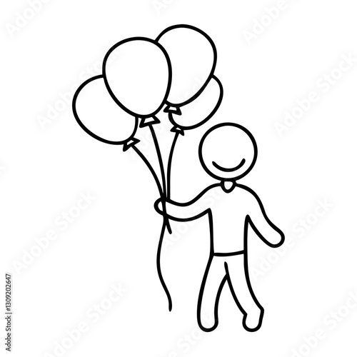 Child Holding Balloons Happy Stick Figure Drawing for Celebrations and Events