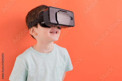Child in virtual reality headset glasses