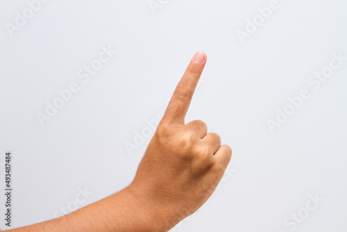 child making the sign up on a white background.