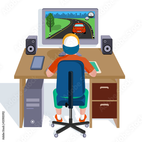 Child plays video games on the computer.