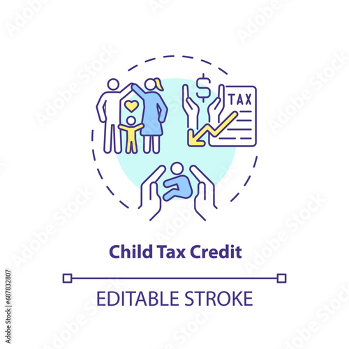 Child tax credit multi color concept icon. Special financial benefit. Support families with kids. Easy to use in article. Round shape line illustration. Abstract idea. Graphic design