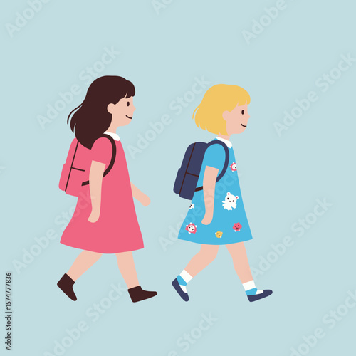 “Child with Backpack Entering School Building on a Bright New Day”