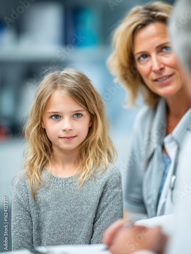 Child with Long Hair Listening to Adult in Medical Consultation Setting