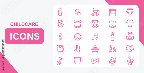 Childcare icons baby care icons newborn icons parenting icons kids icons toddler icons vector line art set