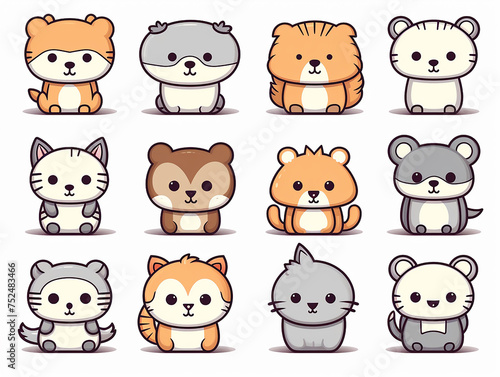 Childish funny animals wild forest kawaii doodle hand drawn characters isolated set on white background
