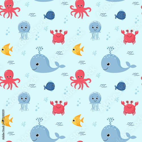 Childish seamless pattern with sea animals. Perfect for kids apparel,fabric, textile, nursery decoration,wrapping paper.