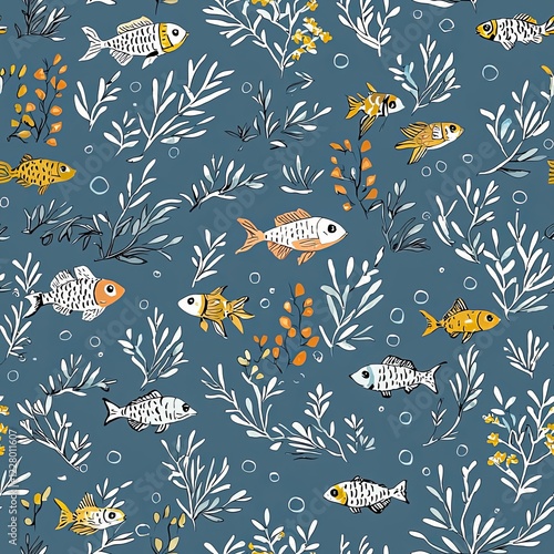 Childish seamless pattern with underwater life. Perfect for kids bedding, fabric, wallpaper.