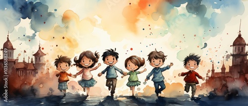 Children Celebrating New Year's in a Cartoon Style