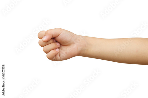 Children fist with clipping path.isolated on white background.