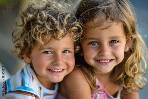 Children Girls Boys Childhood children older brothers and sisters love family together Portrait Fun Happy Joy Happy cute happy young