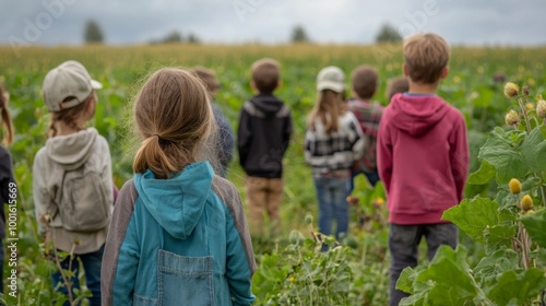 Children learning about farming on educational trip. Educational Farm Tour