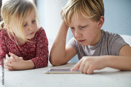 Children playing on smartphone together