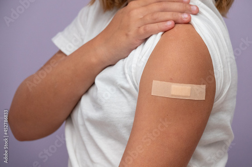 Children receiving vaccine at out side of the thigh.Children vaccine. Covid