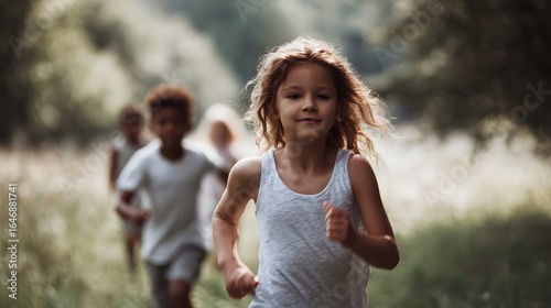 Children running joyfully in a sunny park