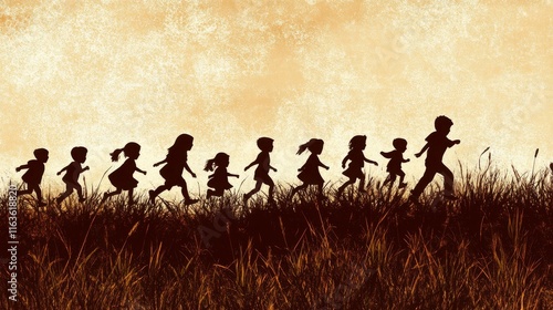 Children Running Silhouettes on Clean Background