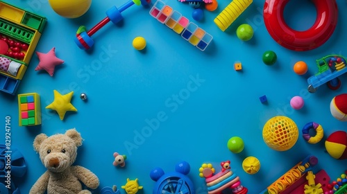 Children s toys on a blue background