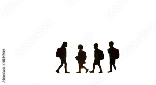 Children Walking Together Silhouette Illustration With Backpacks In Dark Night