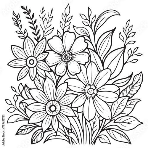Children's floral outline illustration doodle coloring book hand drawn vector