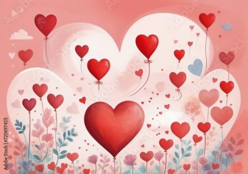 Childrens Illustration Of Love And Romantic Concept Art. Hearts Background.