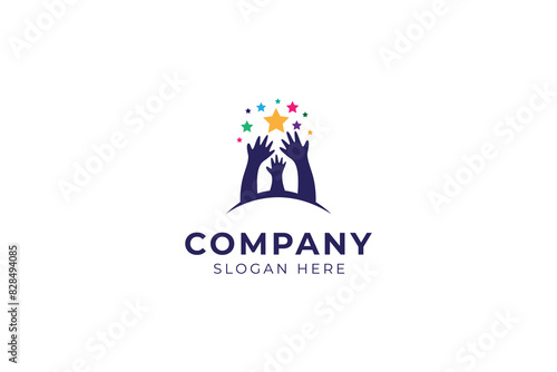 child's hand reaching for the stars in the sky in a colorful flat vector design