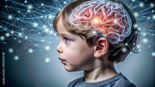 Child's Mind and Brain Activity Concept, Scientific Visualization of Neural Connections, Education and Psychological Development in Children